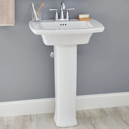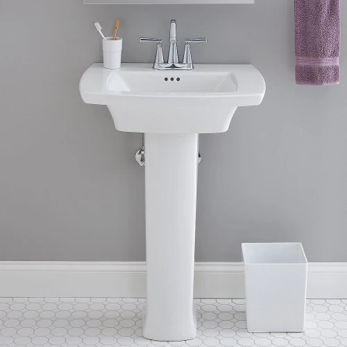 The Edgemere Pedestal Bathroom Sink has a classic style with an updated twist that will complement any bathroom. The Edgemere Bathroom Sink pairs perfectly with the Edgemere Pedestal leg to give your bathroom an elegant look. Made of fine fireclay, this sink is designed with a rear overflow and a faucet ledge with a large deck area.