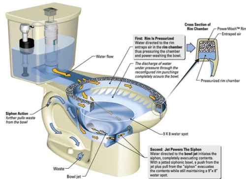 - PowerWash rim scrubs bowl with each flush