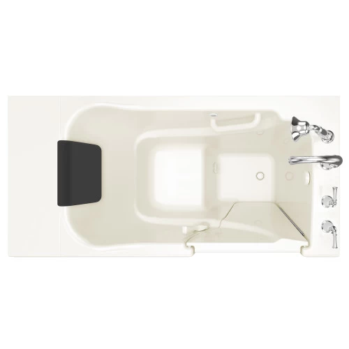The American Standard 30-in x 52-in Gelcoat walk-in bath provides a similar bathing experience to larger models but fits in smaller spaces and uses less water. The included tub extender allows this tub to retrofit in the same space as a standard bathtub. The full sized, contoured door with a low door threshold allows ease of entry and exit. Fully equipped, the 609 Value Series offers all the latest in safety and comfort features with the most advanced therapeutic options and backed by a lifetime warranty on the door seal, a 10 year warranty on the tub shell and a 5 year warranty on all other components.