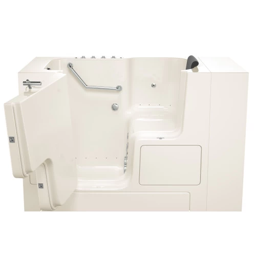 The American Standard 32-in x 52-in Gelcoat walk-in bath provides a similar bathing experience to larger models but fits in smaller spaces and uses less water. The included tub extender allows this tub to retrofit in the same space as a standard bathtub. The full sized, outward opening, contoured door with a low door threshold allows ease of entry and exit. Fully equipped, the 105 Premium Series offers all the latest in safety and comfort features with the most advanced therapeutic options and backed by a lifetime warranty on the door seal, a 10 year warranty on the tub shell and a 5 year warranty on all other components.