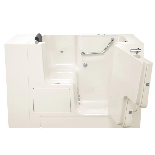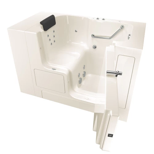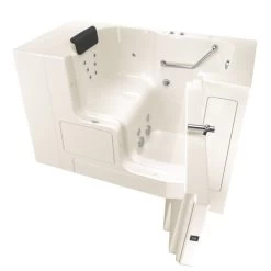 The American Standard 32-in x 52-in Gelcoat walk-in bath provides a similar bathing experience to larger models but fits in smaller spaces and uses less water. The included tub extender allows this tub to retrofit in the same space as a standard bathtub. The full sized, outward opening, contoured door with a low door threshold allows ease of entry and exit. Fully equipped, the 105 Premium Series offers all the latest in safety and comfort features with the most advanced therapeutic options and backed by a lifetime warranty on the door seal, a 10 year warranty on the tub shell and a 5 year warranty on all other components.