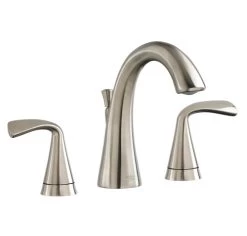 The Fluent widespread faucet from American Standard is a Watersense certified faucet with a maximum flow rate of 1.2 gallons per minute to help save water. Inspired by the natural movement of flowing water, this organic design fits elegantly into any bathroom with its natural forms and clean lines. This innovative faucet features a Speed Connect metal drain with fewer parts, so it installs in less time than an ordinary faucet, even in tighter spaces. A ceramic disc valve cartridge generates a lifetime of drip-free performance.