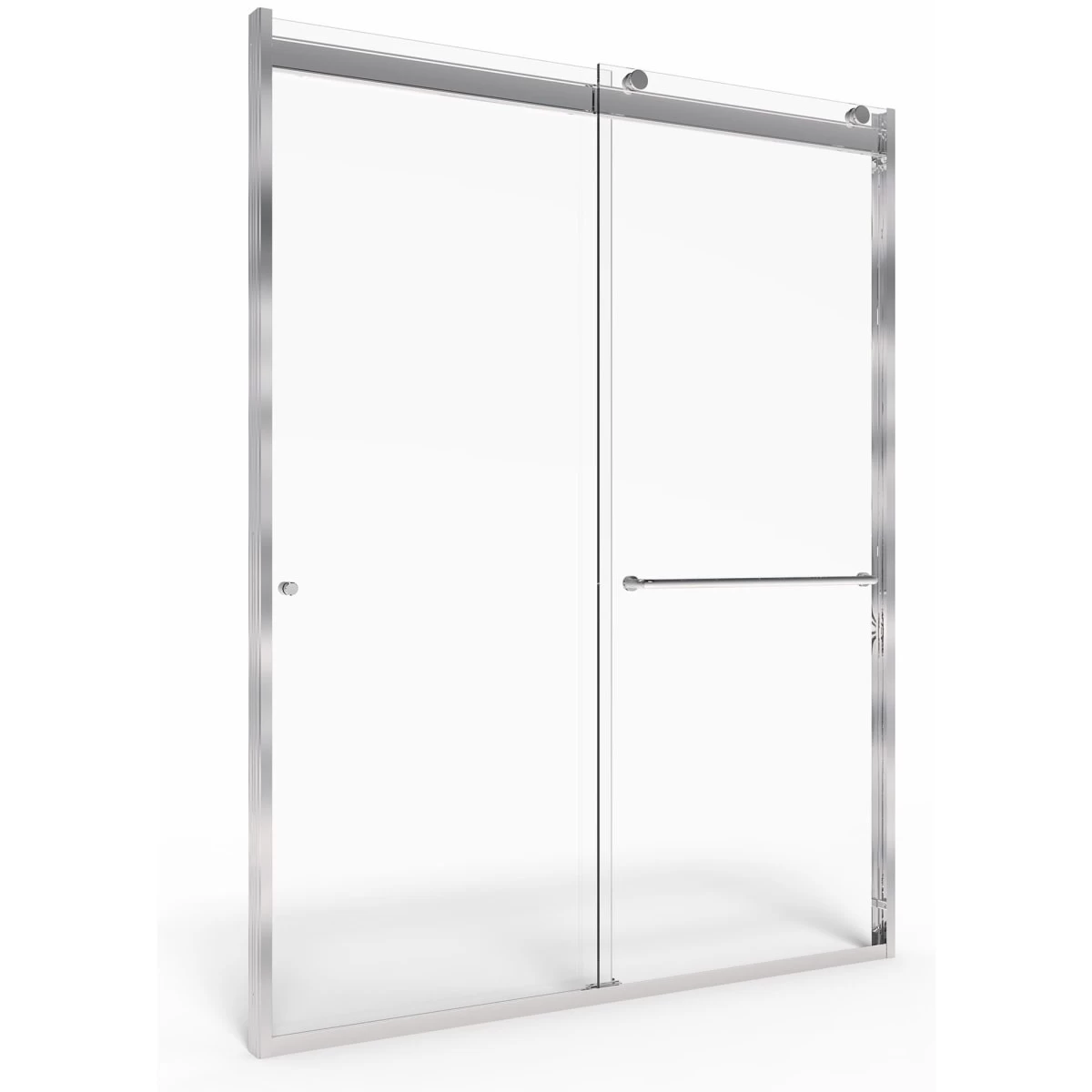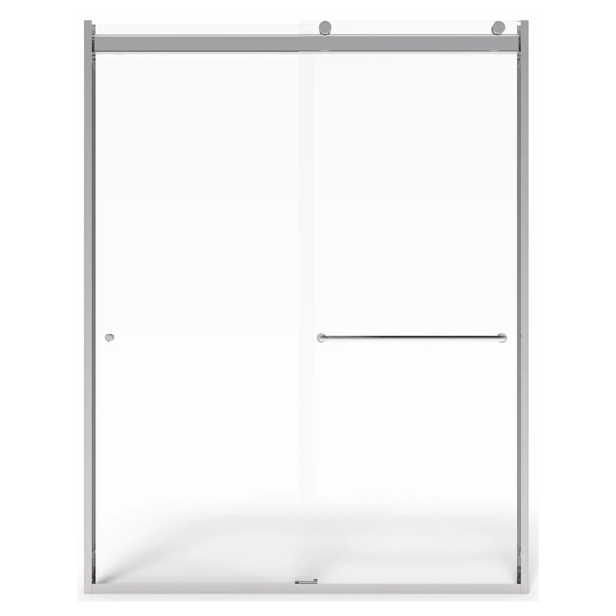 Transform your bathroom with the sophisticated style of the semi frameless top roller sliding shower door. This sleek barn door design features smooth gliding exposed top rollers and clear tempered safety glass with protective coating to help repel water and spotting for a longer lasting shine and easy cleaning.